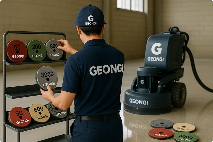 최첨단 다이아몬드 패드를 사용한 정밀 연마 작업입니다. 단계별로 입자 크기를 조절하며 원하는 광택 수준을 달성합니다.